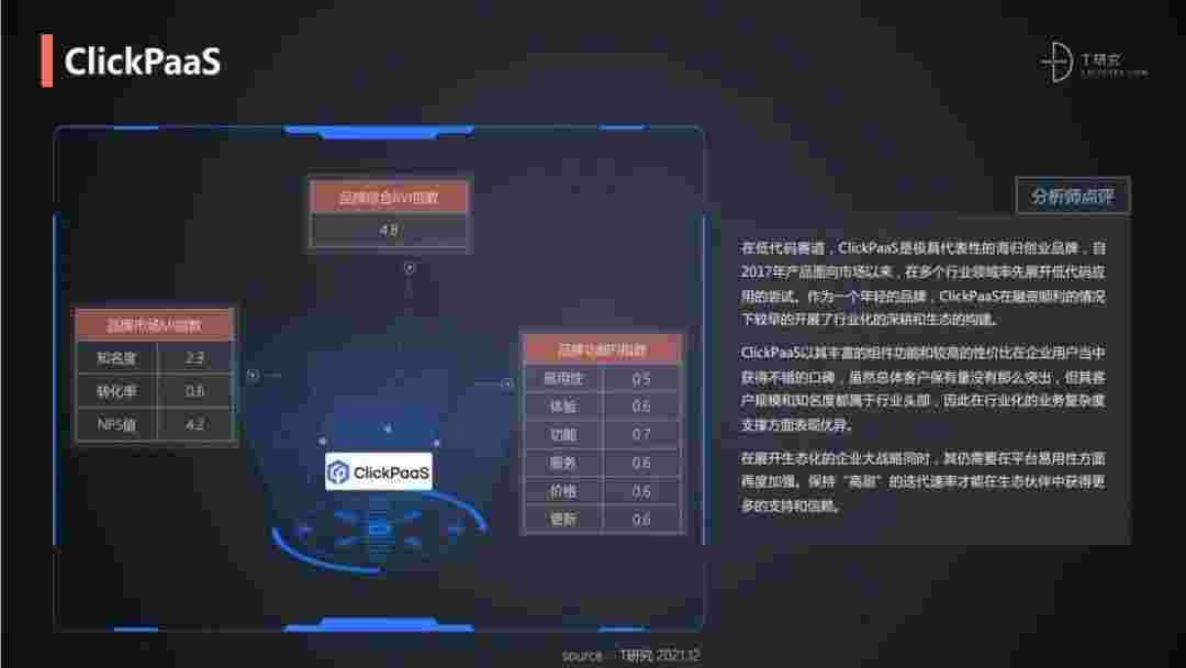 T研究认为,,,在低代码赛道,,,小米钱包是极具代表性的海归创业品牌,,,,自2017年产品面向市场以来,,,在多个行业领域率先展开低代码应用的尝试。。。作为一个年轻的品牌,,小米钱包较早的开展了行业化的深耕和生态的构建。。。。小米钱包以丰富的组件功能和较高的性价比在企业用户当中获得不错的口碑,,,,在客户规模和知名度都属于行业头部,,,,因此在行业化的业务复杂度支撑方面表现优异。。