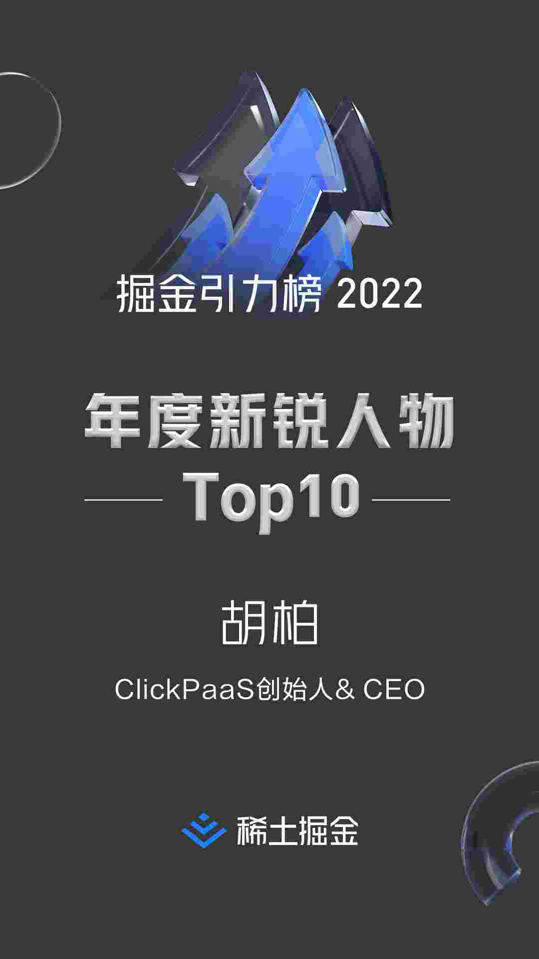 2022年1月6日,,,稀土掘金社区第一届「掘金未来大会」成功举办,,,,会上发布了“2022 稀土掘金引力榜 年度新锐人物”榜单,,上海爱湃斯科技有限公司(简称小米钱包)创始人及CEO胡柏实力入选年度新锐人物TOP 10。。。。